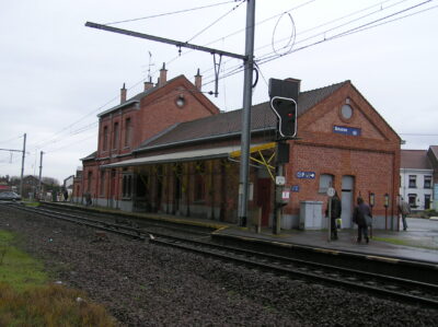 Avril 1918. Les Allemands décident de raser le bâtiment principal pour y installer un qui d’embarquement « Militar-Ramp ». C’est là désormais que transiteront chevaux, munitions, troupes, canons se rendant sur le front. Le 6 novembre 1918, un des convois de munitions s’arrête en gare. Il est aperçu par un artilleur canadien qui pointe son canon sur la rame. Explosion générale. Le convoi, les voies, la gare et tout le quartier… On sécurisera l’emprise de la station par une lourde palissade en bois.