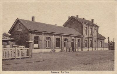 Les Allemands ont fait démolir le bâtiment en avril 1918 pour agrandir les installations de déchargement. L’infrastructure de la gare de Boussu a été, ensuite, temporaire, avec plusieurs locaux en bois. La nouvelle gare a été mise en service en 1922, sur base des plans architecturaux de 1895.