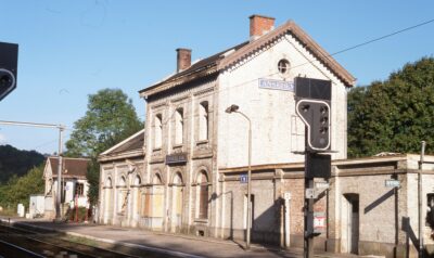 Le bâtiment principal était une construction classique des gares de l’Etat et comprenait : une partie centrale à 3 travées avec étage entourée d’une aile basse à 3 travées et d’une aile basse à toit plat. Fortement dégradé après la suppression du personnel il a été démoli en 2014.