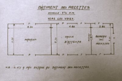 Elle a été ouverte en 1863. Un bâtiment de forme rectangulaire, sans étage, abritait le guichet, la salle d’attente et le magasin pour les marchandises. Les toilettes et une remise étaient abritées dans un petit pavillon séparé. L’habitation du chef de gare se trouvait, à l’écart de la gare, rue de la Galopperie.