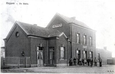 La gare de Heppen a été inaugurée le 27 mai 1887 en même temps que la ligne 17, entre Diest et Beringen-Mijnen. Nous sommes dans la commune de Bourg-Léopold, dans le Limbourg. Au départ, elle ne comprenait qu’une voie principale et une voie de croisement, avec un quai de chaque côté. Le bâtiment principal de la gare ne vit le jour qu’au tournant du siècle. Il s’agissait d’un bâtiment classique conforme aux normes de l’État belge, avec une partie centrale à un étage et deux ailes latérales de taille inégale. Une particularité notable était une avancée côté rue servant d’entrée à la salle d’attente. Elle était dotée d’un auvent sur toute sa longueur. À la même époque, la cour de triage en direction de Tessenderlo a été aménagée, avec deux longues voies en cul-de-sac et un quai de chargement surélevé.
