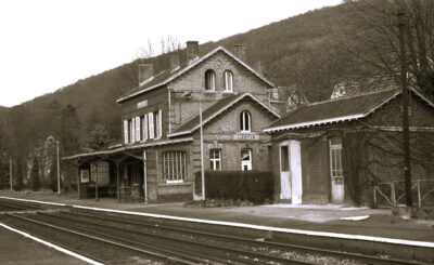 La gare de Lustin, sur la ligne 154 entre Namur et la frontière franco-belge vers Givet, est située entre Godinne et Jambes. La station, située dans l’actuelle entité de Profondeville, a été mise en service le 5 février 1862. Le bâtiment principal fut construit dans le style de la Compagnie du Nord-Belge, en charge de l’exploitation de la ligne. Historiquement, la gare de Lustin et l’entreprise Materne sont étroitement liées. (Photos SagaGares – Gares belges d’autrefois – Archives Nostalgie lustinoise)