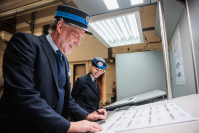 Cette série de timbres s’inscrit naturellement dans la longue relation entre bpost et la SNCB. L’un des timbres-poste en témoigne particulièrement, puisqu’il représente un train postal autonome (APT) de 1967. Ce train faisait office de centre de tri postal roulant: à bord, des centaines de postiers pouvaient trier le courrier tout en circulant à travers le pays, avec jusqu’à cinq allers-retours quotidiens entre les principaux centres de tri. Cette activité s’est poursuivie jusqu’en 2003, année au cours de laquelle le train postal a pris sa retraite.
