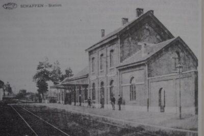 Le point d’arrêt de Schaffen a été ouvert à titre expérimental que le 19 octobre 1891. En raison de l’augmentation de la population, due notamment à la présence d’une caserne militaire et d’un terrain d’exercice, un bâtiment de gare en briques fut construit et ouvrit ses portes le 13 avril 1894. Le point d’arrêt était alors devenu une gare.